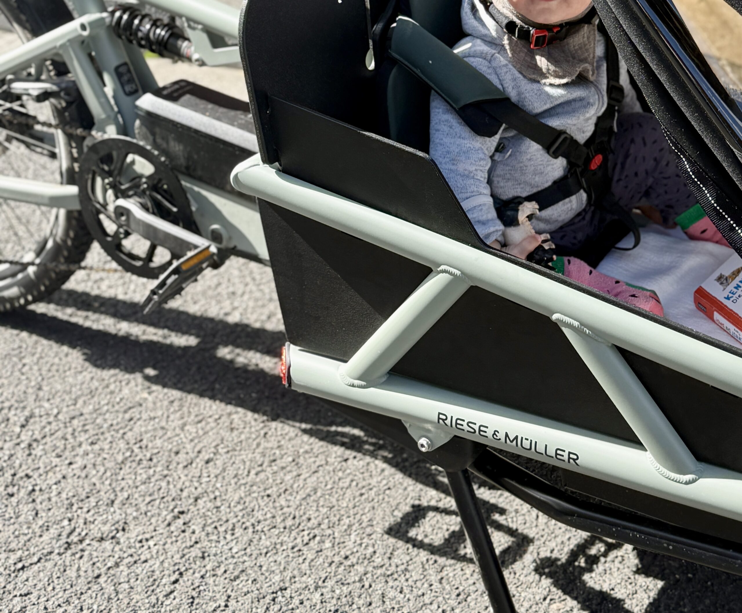 Unser Load5 von Riese & Müller hat inzwischen tatsächlich ein zweites Auto ersetzt und wir hätten selbst nicht gedacht, wie sehr das unseren Familienalltag positiv verändern würde. Die meisten Strecken fahren wir mittlerweile ganz selbstverständlich mit dem Rad und das bei Wind und Wetter!